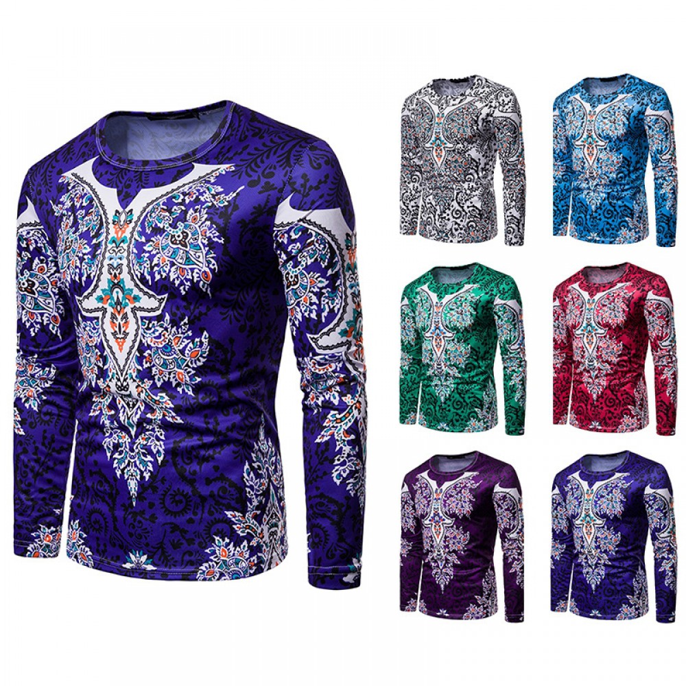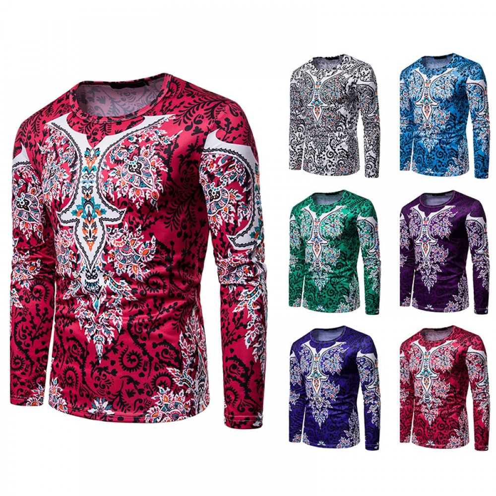 Men's Ethnic Style Floral 3D Printing Round Neck Long Sleeve T-Shirt