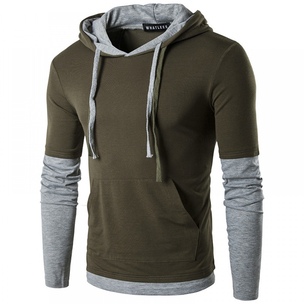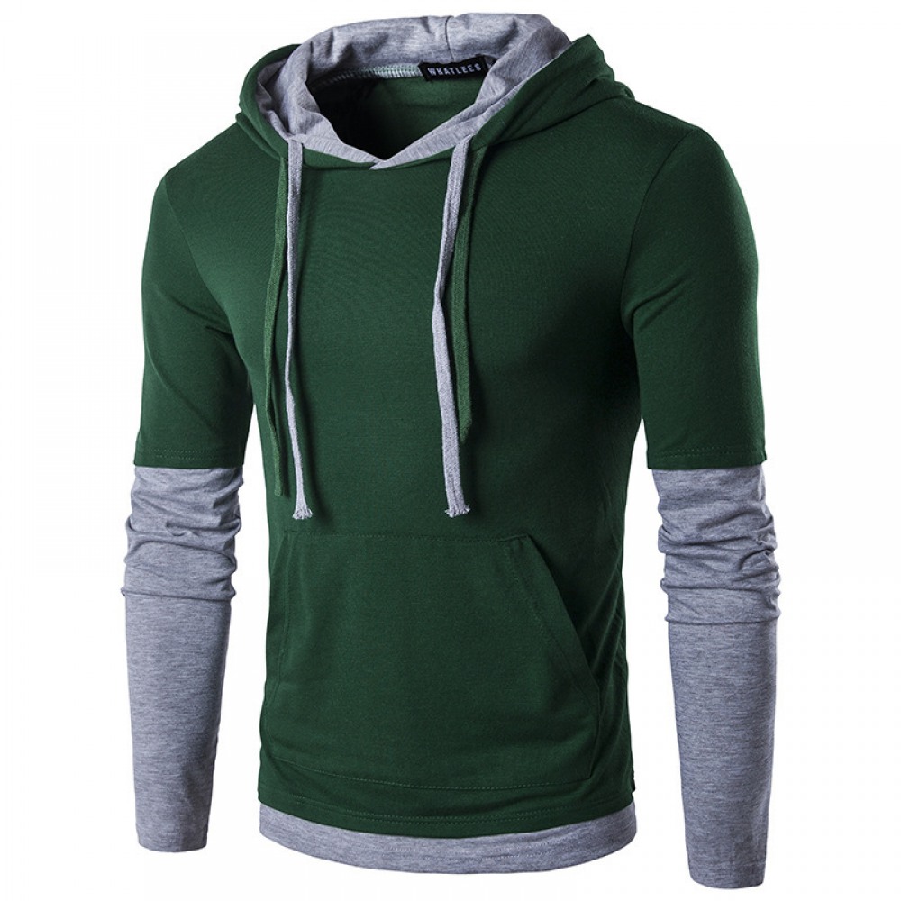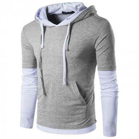 Men's Long-Sleeved Hooded Sleeves Color Matching Fashion Slim T-Shirt