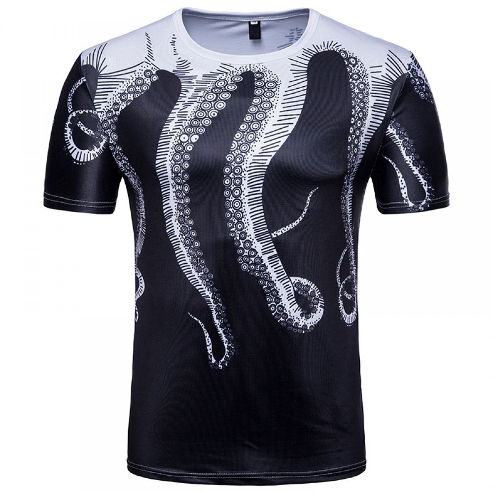 Men's Shirt Marine Fresh Wind Printing Octopus 3D Printing T-Shirt Short Sleeve