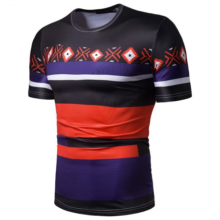 New Summer Men's Short-Sleeved T-Shirt Mens Contrast Striped Slim Casual T-Shirt