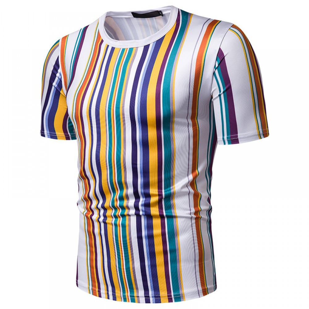 New Summer Men's Short-Sleeved T-Shirt Men's Contrast Striped Slim Casual T-Shirt