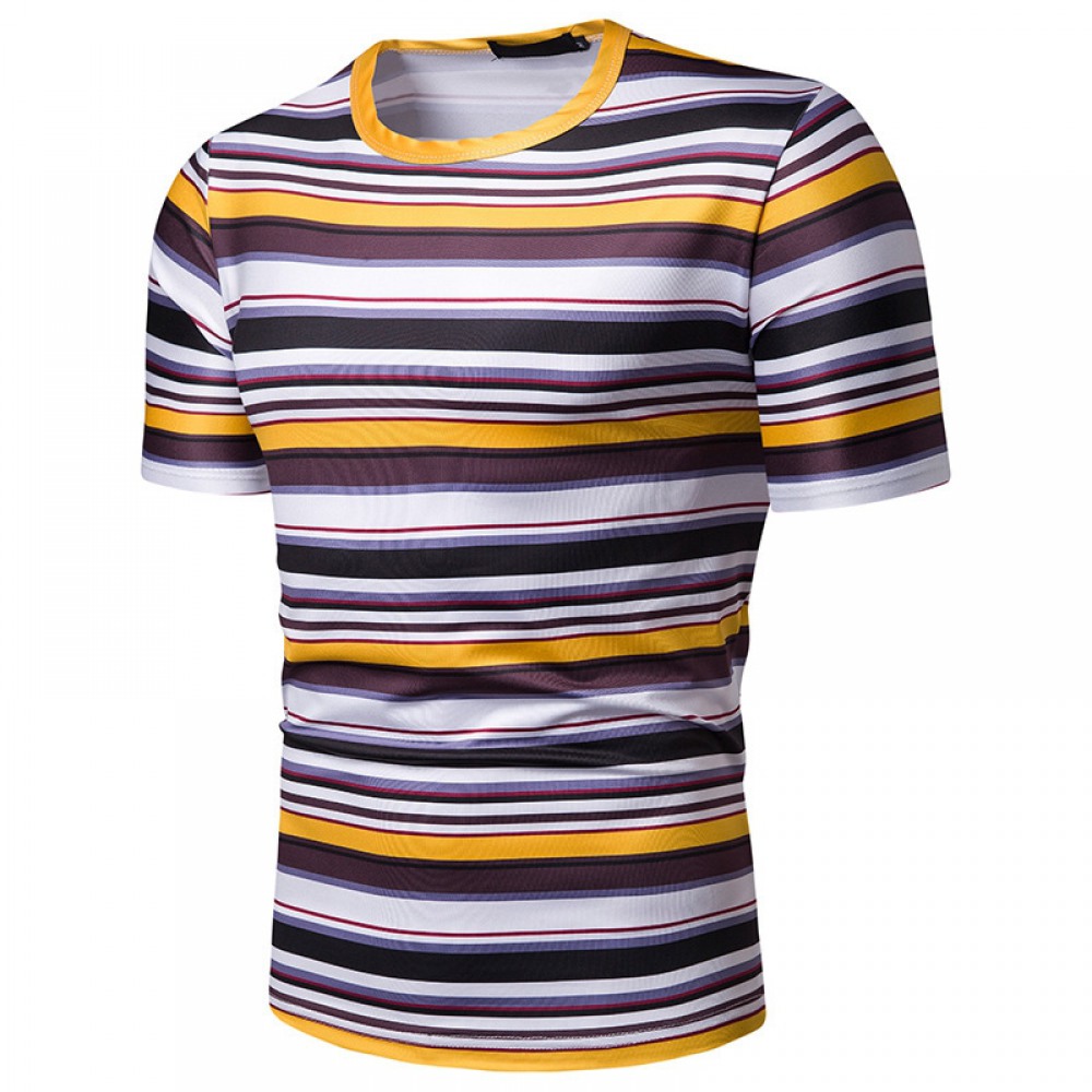 New Summer Men's Short-Sleeved T-Shirt Mens Contrast Striped Slim Casual T-Shirt
