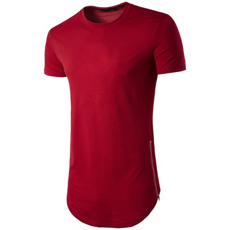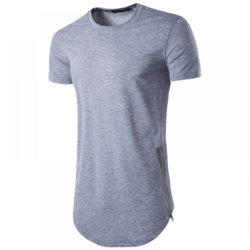 Summer Men's Personality High Street Style Double Zipper Long Round Neck T-Shirt